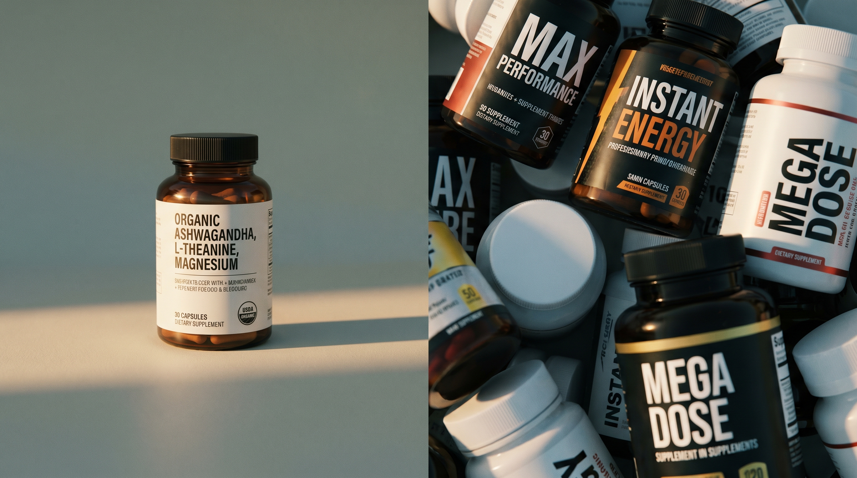 - Extreme claims with no clinical support. "10,000% Daily Value of Vitamin C" is not a sign of superiority — it's a sign of poor formulation judgment.